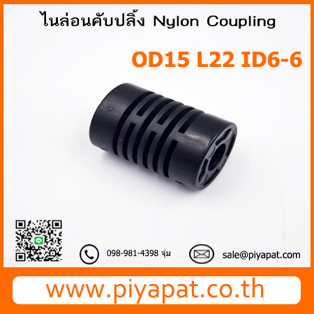 ไนล่อนคัปปลิ้ง Nylon Coupling โตนอก 15 มม. ยาว 22 มม. รูเพลา 6-6 มม. : OD15 L22 ID6-6