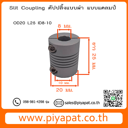 Slit Coupling คัปปลิ้งแบบผ่า แบบแคลมป์ โตนอก 20 มม. ยาว 25 มม. รูเพลา 8-10 มม. : OD20 L25 ID8-10