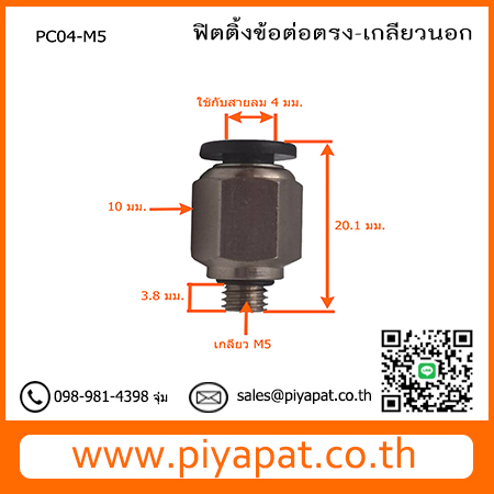 ข้อต่อสายลมตรง-เกลียวนอก ท่อลม 4 มม. เกลียว M5 PC04-M5