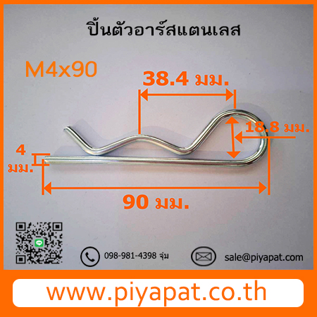 ปิ้นล็อคตัว R (Snap Pin) สแตนเลส ขนาด 4 มม. ยาว 90 มม. : M4x90