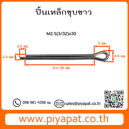 ปิ้นล็อค ปิ้นเหล็กชุบขาว ขนาด M2.5 ยาว 30 มม. : M2.5(3/32)x30