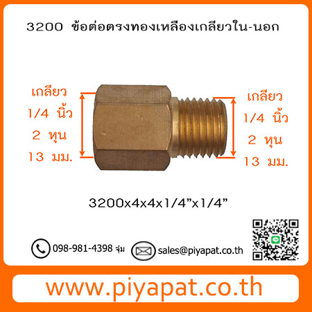 3200 ข้อต่อตรงทองเหลืองเกลียวใน-นอก เกลียวใน 1/4 นิ้ว/2 หุน/10 มม. - เกลียวนอก 1/4 นิ้ว/2 หุน/10 มม. 3200x4x4x1/4"x1/4"