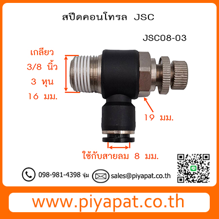 JSC สปีดคอนโทรลวาล์ว ตัวปรับลมเกลียวนอก ท่อลม 8 มม. เกลียว 3/8 นิ้ว/3 หุน/16.มม. JSC08-03