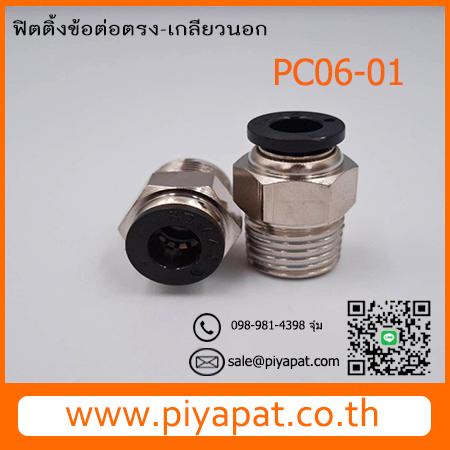 ข้อต่อลมตรง-เกลียวนอก ท่อลม 6 มม. เกลียว 1 หุน/10 มม./ 1/8" : PC06-01