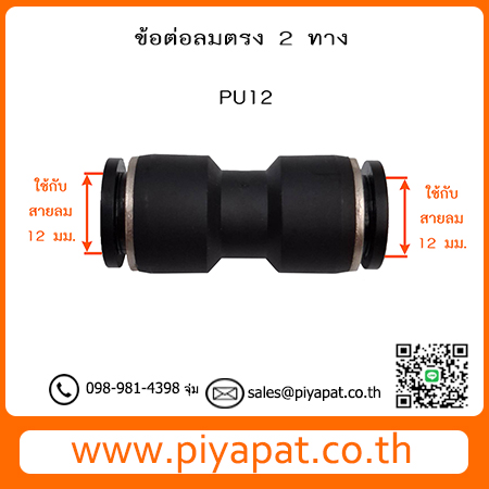 ข้อต่อลมตรง 2 ทาง ท่อลม 12 มม. PU12