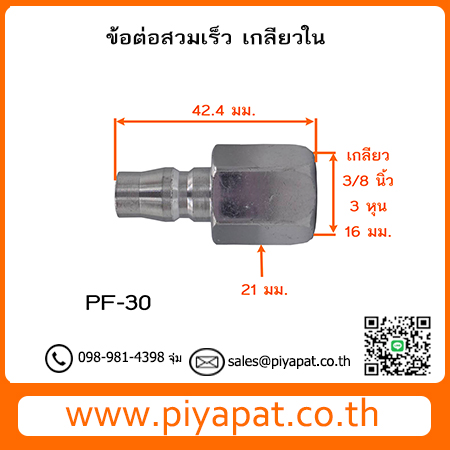 ข้อต่อลมสวมเร็ว เกลียวใน รุ่น PF เกลียวใน 3/8 นิ้ว/3 หุน/16 มม. : PF-30