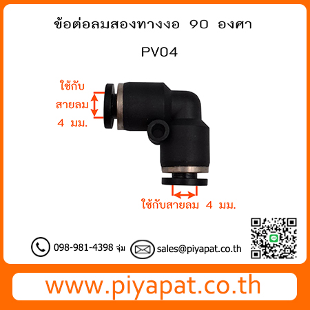 ข้อต่อลมสองทาง งอ 90 องศา ท่อลม 4 มม. PV04