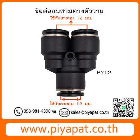 ข้อต่อลมสามทางตัววาย ท่อลม 12 มม. PY12