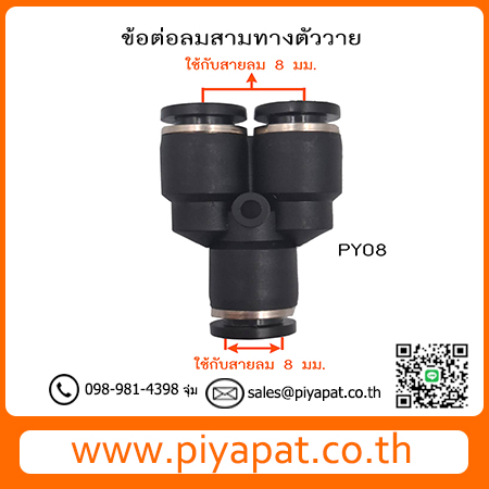 ข้อต่อลมสามทางตัววาย ท่อลม 8 มม. PY08
