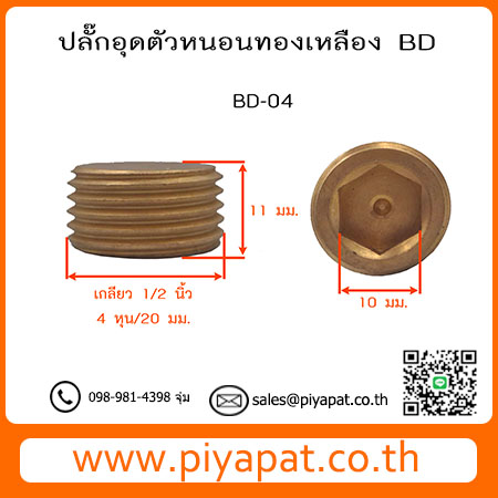 ปลั๊กอุดตัวหนอนทองเหลือง เกลียว 1/2 นิ้ว/4 หุน/20 มม. BD-04