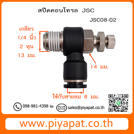 JSC สปีดคอนโทรลวาล์ว ตัวปรับลมเกลียวนอก ท่อลม 8 มม. เกลียว 1/4 นิ้ว/2 หุน/13.มม. JSC08-02