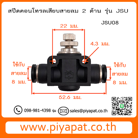 JSU สปีดคอนโทรลเสียบสายลมสองด้าน ท่อลม 8 มม. JSU08