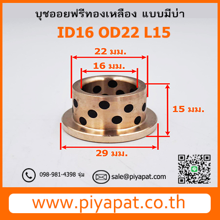 บุชออยฟรีทองเหลืองกราไฟต์หน้าแปลน Oil Free Bushing : ID16 OD22 L15
