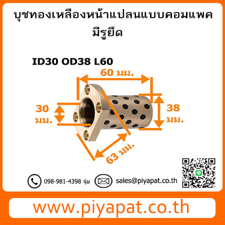บุชออยฟรีทองเหลืองกราไฟต์ หน้าแปลน แบบคอมแพค มีรูยึด รูเพลา 30 มม. โตนอก 38 มม. ยาว 60 มม. : ID30 OD38 L60