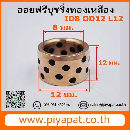 บุชออยฟรีทองเหลืองกราไฟต์ โต 12 มม. รูเพลา 8 มม. ยาว 12 มม. : OD12 ID8 L12