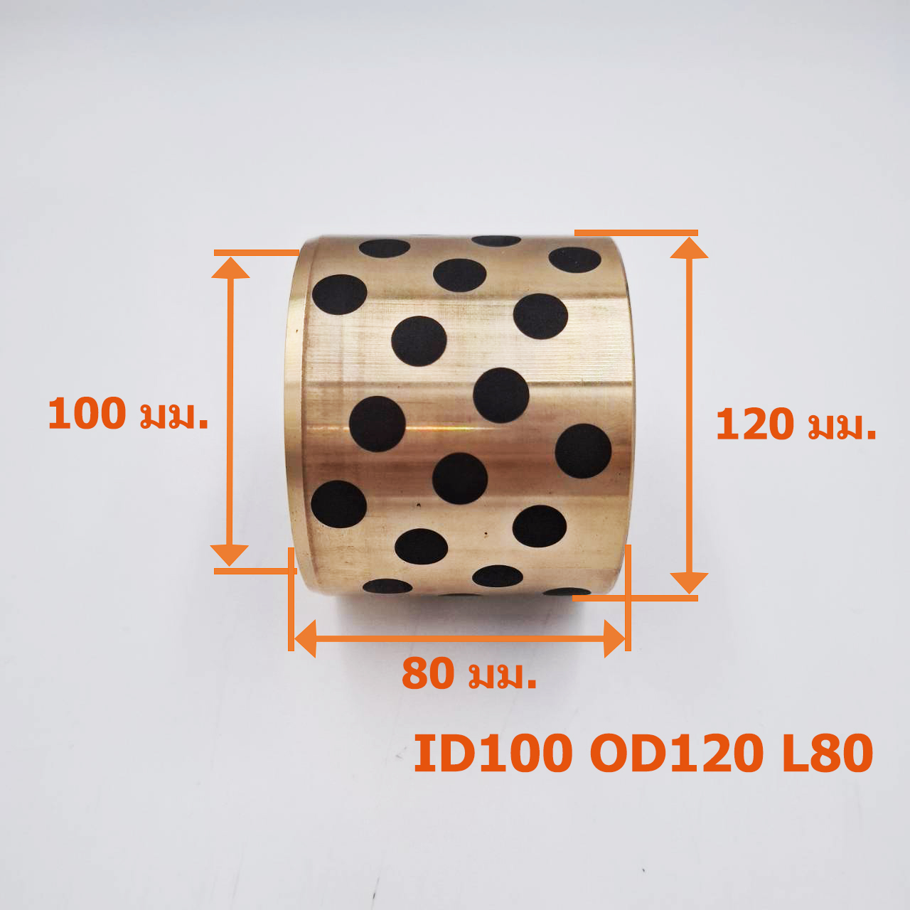 บุชออยฟรีทองเหลืองกราไฟต์ โต 120 มม. รูเพลา 100 มม. ยาว 80 มม. : OD120 ID100 L80