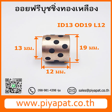 บุชออยฟรีทองเหลืองกราไฟต์ โต 19 มม. รูเพลา 13 มม. ยาว 12 มม. : OD19 ID13 L12