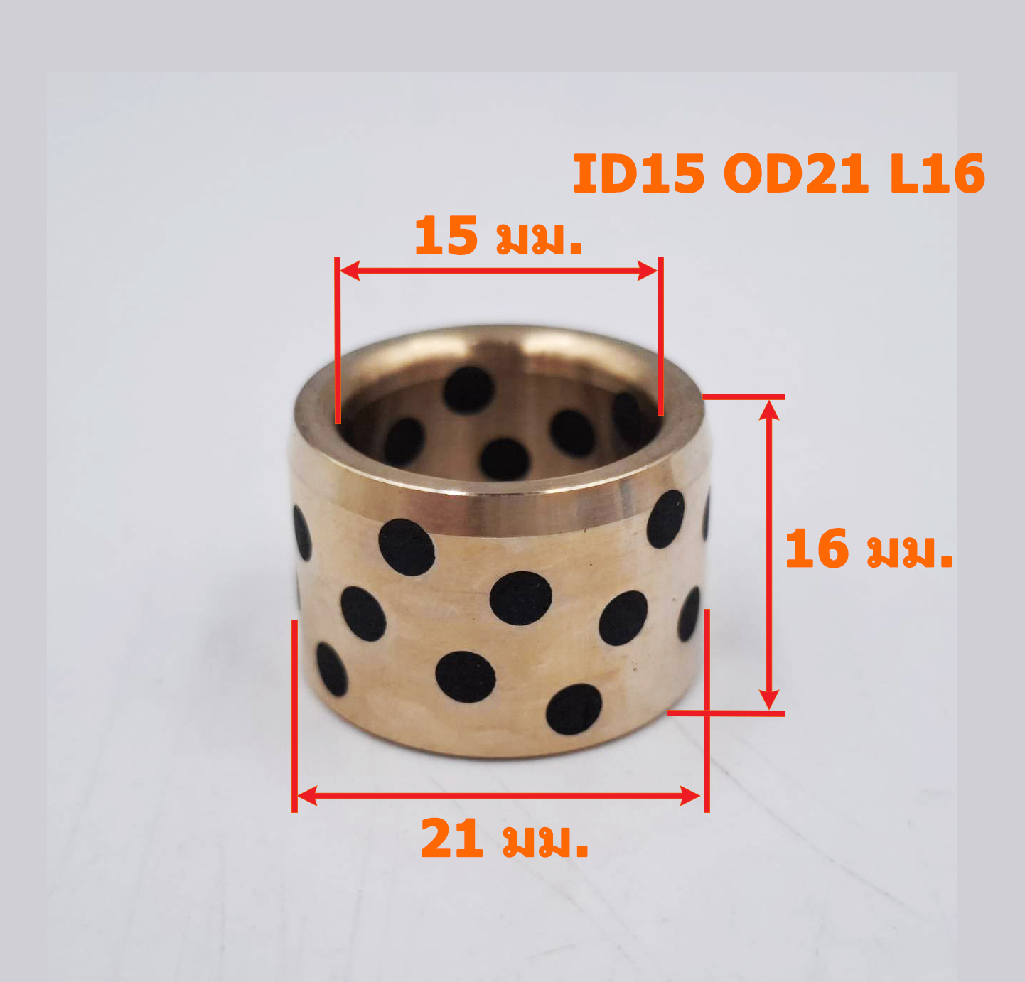 บุชออยฟรีทองเหลืองกราไฟต์ โต 21 มม. รูเพลา 15 มม. ยาว 16 มม. : OD21 ID15 L16