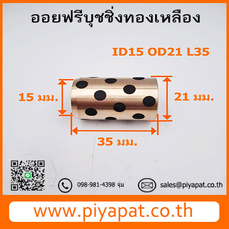 บุชออยฟรีทองเหลืองกราไฟต์ โต 21 มม. รูเพลา 15 มม. ยาว 35 มม. : OD21 ID15 L35