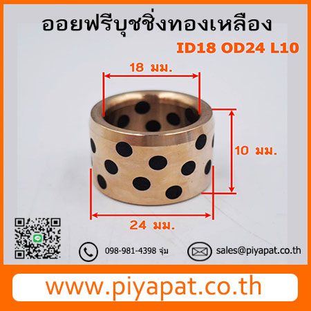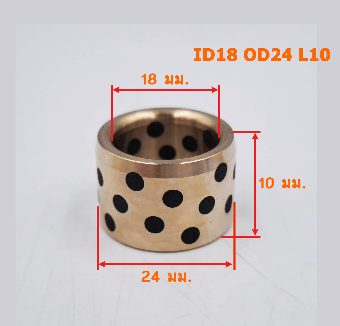 บุชออยฟรีทองเหลืองกราไฟต์ โต 24 มม. รูเพลา 18 มม. ยาว 10 มม. : OD24 ID18 L10