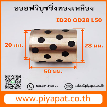 บุชออยฟรีทองเหลืองกราไฟต์ โต 28 มม. รูเพลา 20 มม. ยาว 50 มม. : OD28 ID20 L50