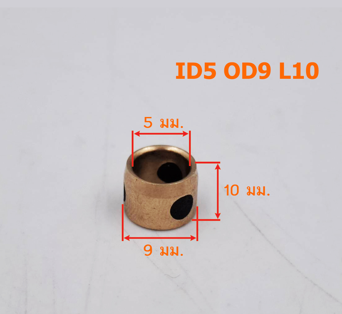 บุชออยฟรีทองเหลืองกราไฟต์ โต 9 มม. รูเพลา 5 มม. ยาว 10 มม. : OD9 ID5 L10