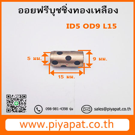 บุชออยฟรีทองเหลืองกราไฟต์ โต 9 มม. รูเพลา 5 มม. ยาว 15 มม. : OD9 ID5 L15