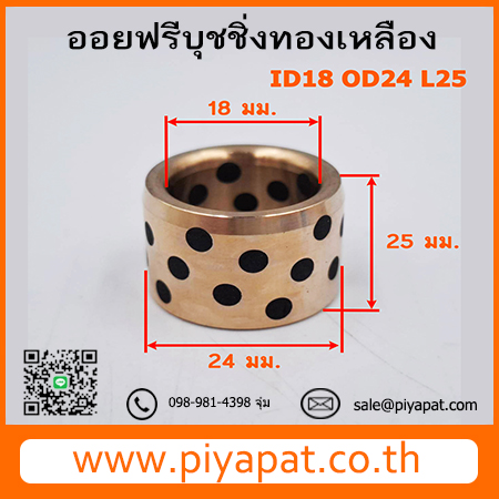 บุชออยฟรีทองเหลืองกราไฟต์ Oil Free Bushing รูเพลา 18 มม. โตนอก 24 มม. ยาว 25 มม.: ID18 OD24 L25