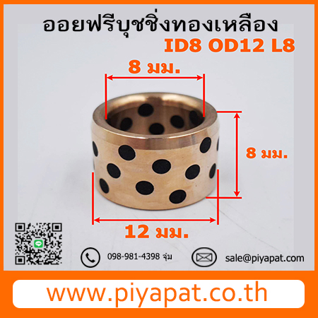 บุชออยฟรีทองเหลืองกราไฟต์ Oil Free Bushing รูเพลา 8 มม. โตนอก 12 มม. ยาว 8 มม.: ID8 OD12 L8