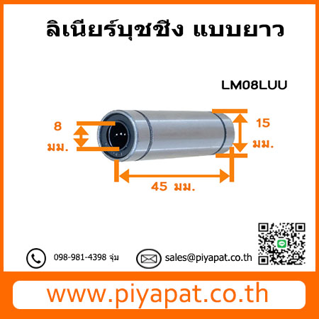 ลิเนียร์บุชชิ่ง แบบยาว รูเพลา 8 มม. โต 15 มม. ยาว 45 มม. : LM08LUU