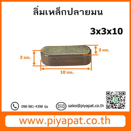 ลิ่มสี่เหลี่ยม ปลายมน หน้ากว้าง 3 มม. สูง 3 มม. ยาว 10 มม. : 3x3x10
