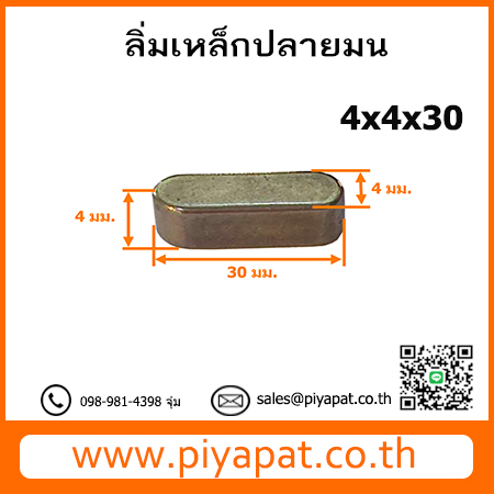 ลิ่มสี่เหลี่ยม ปลายมน หน้ากว้าง 4 มม. สูง 4 มม. ยาว 30 มม. : 4x4x30