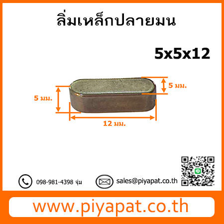 ลิ่มสี่เหลี่ยม ปลายมน หน้ากว้าง 5 มม. สูง 5 มม. ยาว 12 มม. : 5x5x12