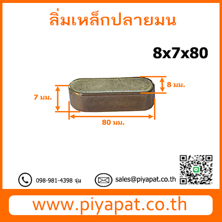 ลิ่มสี่เหลี่ยม ปลายมน หน้ากว้าง 8 มม. สูง 7 มม. ยาว 80 มม. : 8x7x80
