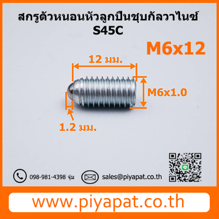 สกรูตัวหนอนหัวลูกปืนชุบกัลวาไนซ์ S45C ขนาด M6x1.0 ยาว 12 มม. : M6x1.0x12