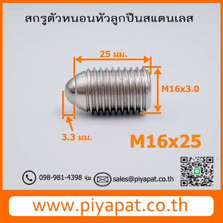 สกรูตัวหนอนหัวลูกปืนสแตนเลส Ball Plunger Steel SUS304 ขนาด M16x2.0x25