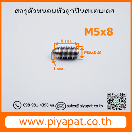 สกรูตัวหนอนหัวลูกปืนสแตนเลส Ball Plunger Steel SUS304 ขนาด M5x0.8x8