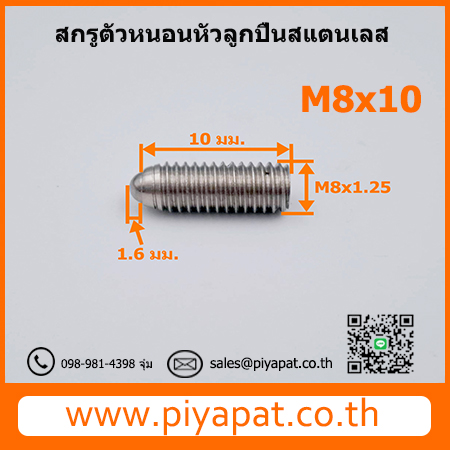 สกรูตัวหนอนหัวลูกปืนสแตนเลส M8x1.25 ยาว 10 มม. : M8x1.25x10