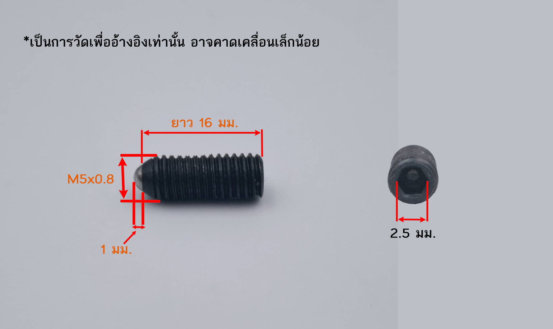 สกรูตัวหนอนหัวลูกปืนเหล็กดำ Ball Plunger Steel ขนาด M5x0.8x16