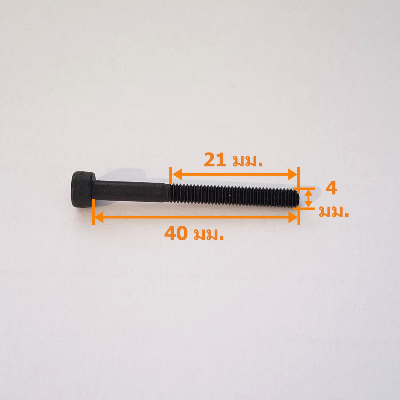 สกรูหัวจมดำ เกลียวมิล ขนาด M4 ระยะพิตซ์ 0.70 มม. ยาว 40 มม. : M4x40 เกลียวครึ่ง