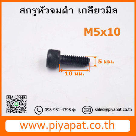 สกรูหัวจมดำ เกลียวมิล ขนาด M5 ระยะพิตซ์ 0.80 มม. ยาว 10 มม. : M5x10