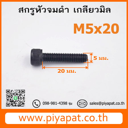 สกรูหัวจมดำ เกลียวมิล ขนาด M5 ระยะพิตซ์ 0.80 มม. ยาว 20 มม. : M5x20