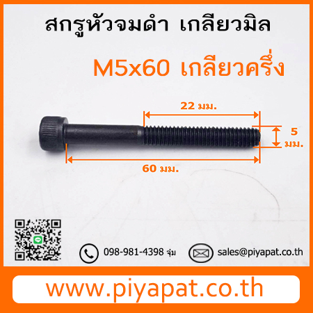 สกรูหัวจมดำ เกลียวมิล ขนาด M5 ระยะพิตซ์ 0.80 มม. ยาว 60 มม. : M5x60 เกลียวครึ่ง