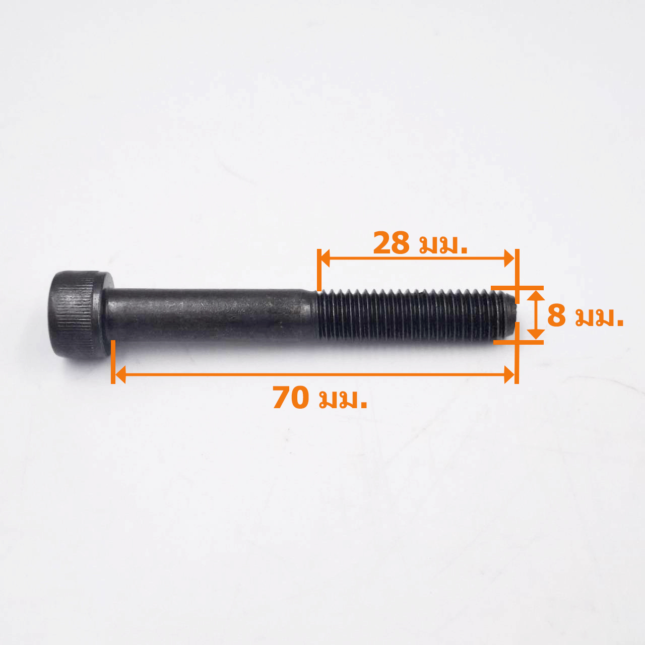 สกรูหัวจมดำ เกลียวมิล ขนาด M8 ระยะพิตซ์ 1.25 มม. ยาว 70 มม. : M8x70 เกลียวครึ่ง