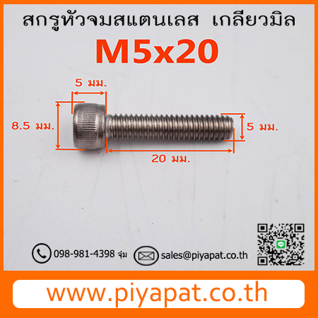 สกรูหัวจมสแตนเลส ขนาด M5 ระยะพิตซ์ 0.80 มม. ยาว 20 มม. : M5x20
