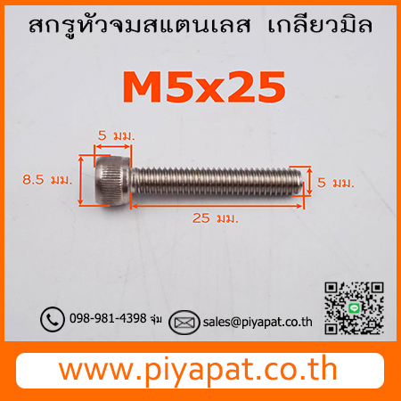 สกรูหัวจมสแตนเลส ขนาด M5 ระยะพิตซ์ 0.80 มม. ยาว 25 มม. : M5x25