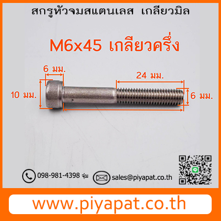 สกรูหัวจมสแตนเลส ขนาด M6 ระยะพิตซ์ 1.00 มม. ยาว 45 มม. : M6x45 เกลียวครึ่ง
