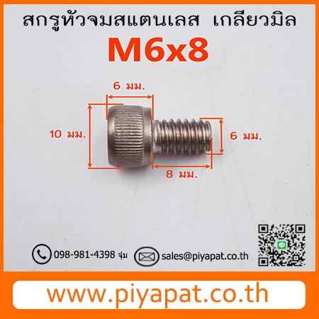 สกรูหัวจมสแตนเลส ขนาด M6 ระยะพิตซ์ 1.00 มม. ยาว 8 มม. : M6x8